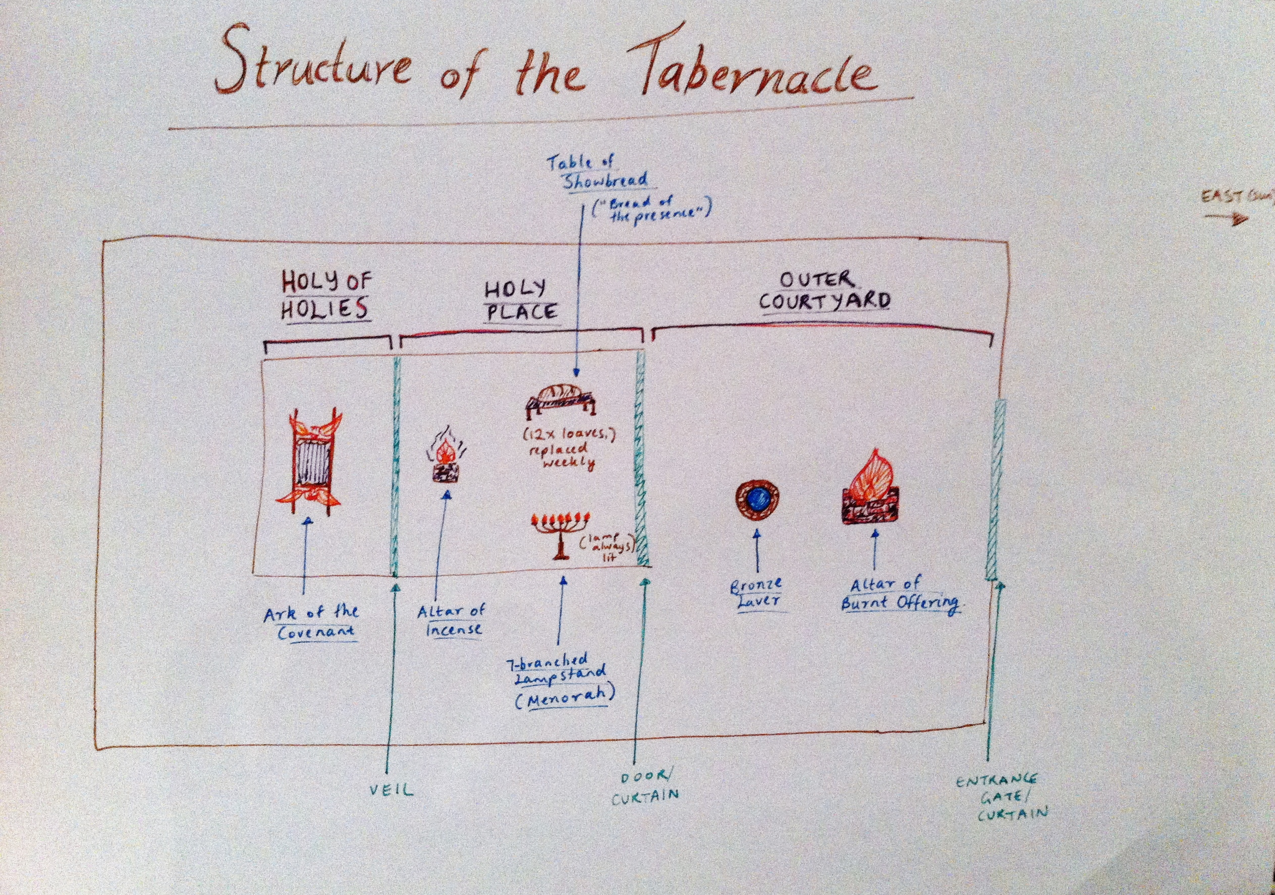 Who may stand in His holy place? The tabernacle consisted of various portions, and to go into the meaning and design of each section would be a topic of its own! The design of the tabernacle is intricately woven with revelation of Christ. However, here is a diagram of the tabernacle layout. We will just focus a little bit about who could enter the innermost chamber, of Holy of Holies.