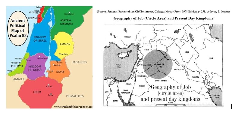 Basically, the story of Job took place in Edom (a land usually mentioned in the context of their inhabitants being at war with God’s people, and one which has few blessings mentioned for it). Job’s friends were geographical neighbours. I find it quite interesting that the whole story of Job took place in Edom, a land I wouldn’t usually associate with God’s blessing or righteousness. I have found a couple of maps on the net which help visualise where Job and his friends may have come from.